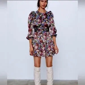 Zara Satin Floral Multicolor Dress, size S