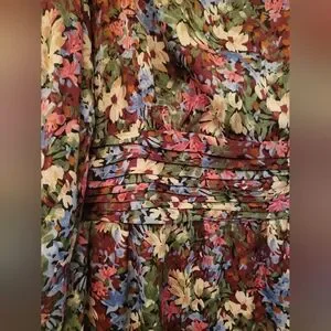 This vibrant floral dress features a stunning multicolor design, perfect for fall. The dress offers a flattering fit with its elegant silhouette.