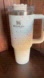Durable Stanley tumbler. Features a sturdy handle. Dishwasher safe.