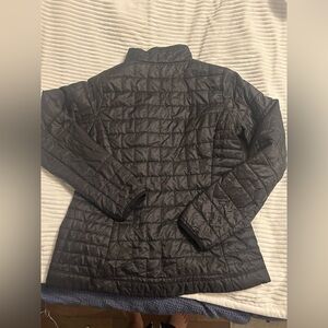 Good used condition! Very little signs of wear besides some fraying in the stitching on the arms (pictured) and price reflects those imperfections. Great deal on a great quality jacket!