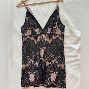 Free People Black Night Shimmer and Cream Backless Dress