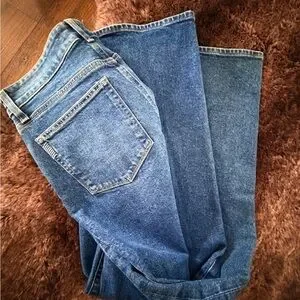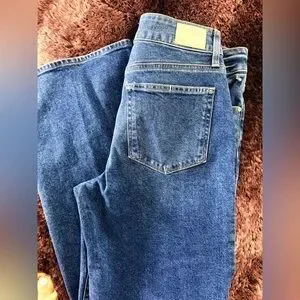 Stylish straight leg jeans by PAIGE. Rich blue hue. Perfect for versatile wear.
