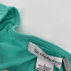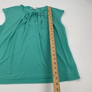 Liz Claiborne Sleeveless Tie Neck Draped Blouse Top Size Large Womens Teal Green