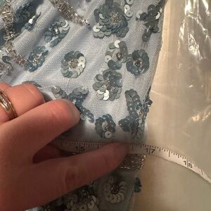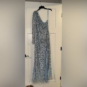 MAC DUGGAL Blue Embellished One Sleeve Faux Wrap Gown 16 5659