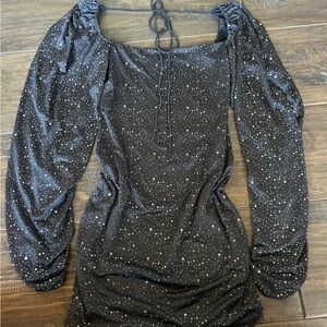 Chic black dress adorned with shimmering silver details. Perfect for a night out.