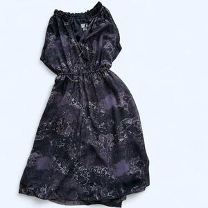 Converse One Star Black and Purple Floral Midi Dress w/ Tie Back Detail- Medium