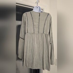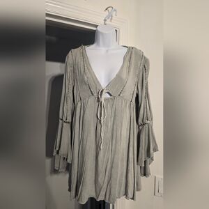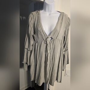 PrettyLittleThing Tunic Top Washed Gray Tie Front Frill Sleeve Beach Size 6