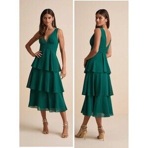 Lulus Celebration Time Emerald Green Sleeveless Tiered Midi Dress Size Small