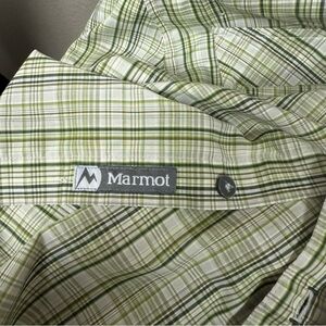 Marmot Green Plaid Short Sleeve Button Shirt Outdoor Hiking Casual L