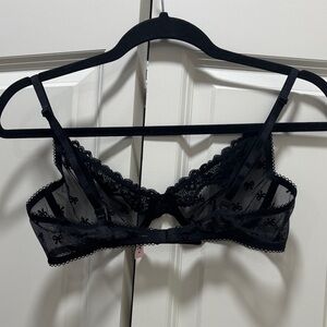 Victoria's Secret NWOT Sheer Black Bow Lace Underwire Tease 36B