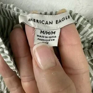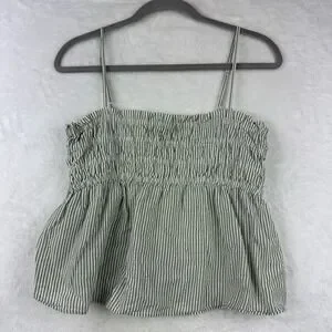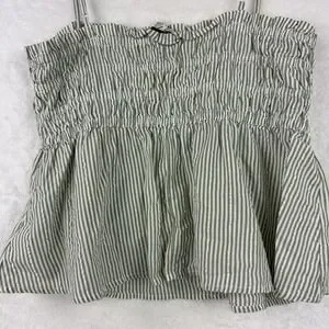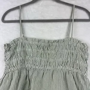 American Eagle Top Womens Medium Green Seersucker Halter Sleeveless Top Smocked