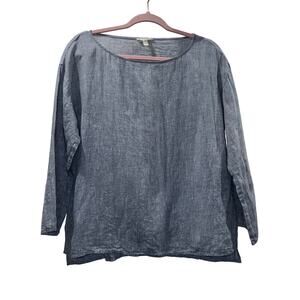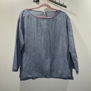 Eileen Fisher 100% Organic Linen Top – Size Small – Chambray Blue