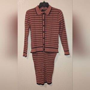 Step out in style with this elegant Rust Red Cardigan and maxi skirt set. Perfect for any occasion, this set offers a chic and sophisticated look.
