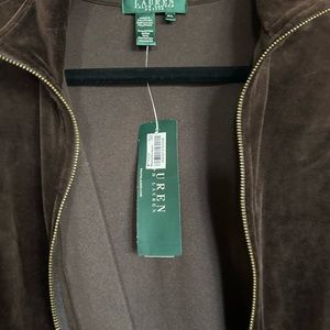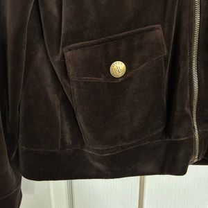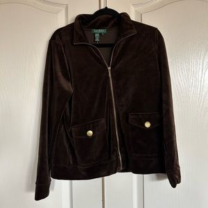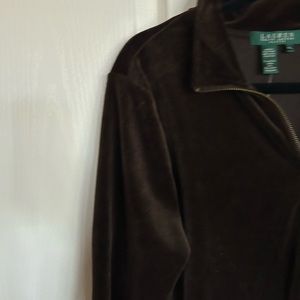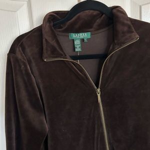 Lauren Ralph Lauren chocolate brown velour track suit jacket size Large petite