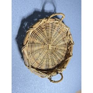 Vintage Large Wrapped Rattan Tray With Handles Mid Century