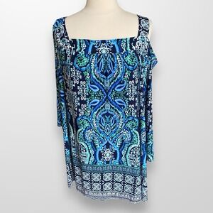 Avenue Woman's Size 26 / 28 Top Shirt Cold Shoulder Stretchy Slinky Flowy