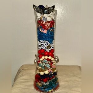 God Bless America! Mystery vase full of vintage Jewlery! Treasure Hunt and Decor