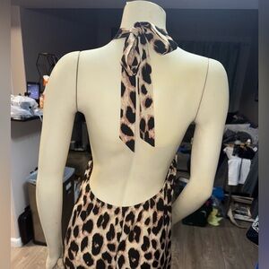 Turn heads with the captivating backless design of this Sleeveless Leopard Print Maxi Dress. Crafted from lightweight and comfortable 100% polyester, this dress features a stylish backless cut that adds a touch of drama and allure. The fitted halter neck bodice gracefully flows into a tiered maxi skirt, ensuring a flattering silhouette. Perfect for summer days and evenings, or layered for other seasons, this dress offers both style and ease. Make a statement and showcase your unique flair with this chic and breezy midi dress.