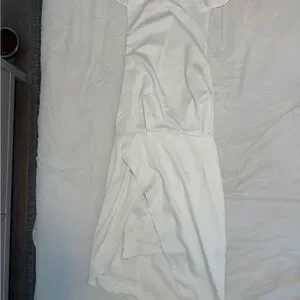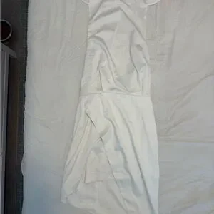 Chic asymmetrical design. Halter neckline. Perfect for elegant occasions.