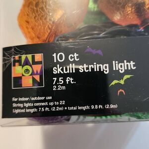 New in box 10ct string lights with colored skulls, 7.5 ft long, for indoor or outdoor use