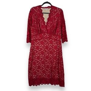 Kiyonna Red Lace Women Dress Size 2X Plus Size Cocktail Evening Romantic Regency