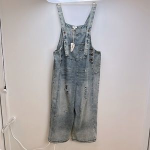 Easel Sanforized Washed Denim Overalls Slouchy Relaxed Oversized M Wide Leg