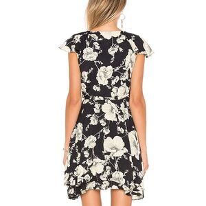 Free People French Quarter Mini Wrap Dress. Size large. In excellent preowned condition. Pretty and feminine, this printed wrap dress features ruffle details along the neckline. It also features a tie at the waist, making it somewhat adjustable. Cute and flirty, you can even adjust the V-neck based on the tie or wrap style. All over floral print. Black and white in color. flutter cap sleeves. Vintage style blossoms. Unlined. 60% Viscose, 40% Rayon. Great for a date night, party, or any occasion. Soft, breathable fabric. delicate and lovely. No flaws. From a pet and smoke free home. Reasonable offers accepted. Style # OB778956