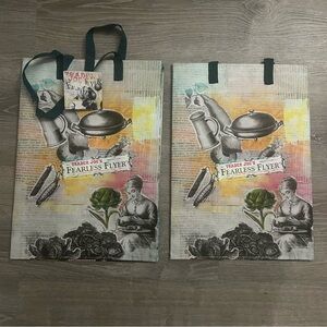 Set of two NWT Rare Trader Joe's Fearless Flyer tote bags. Features a colorful design with vintage vibes.