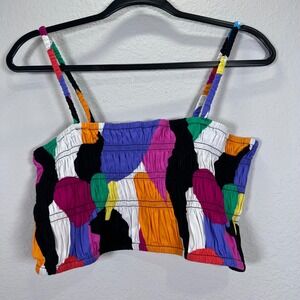 A New Day Smocked Crop Top Colorful Abstract Print halter Tank Top size large