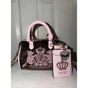 Juicy Couture Mini Bag SCOTTIE Dogs Mino Satchel Crossbody Strap Brown & Pink