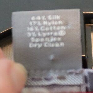 64% Silk, 17% Nylon, 16% Cotton and 3% Lycra Spandex.