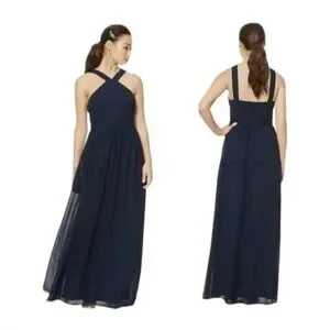 🆑️CLEARANCE Bill Levkoff Formal Maxi Dress Navy Blue Cross-Strap Size 10 Sample