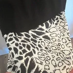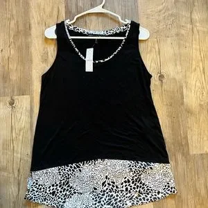 NWT woven hem top. Leopard print trim around neckline and bottom. Split sides at bottom. Very flattering style.