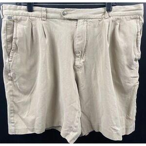 Tommy Bahama Pleated Front Shorts Mens Size 38 Silk Blend Beige Relaxed 9''