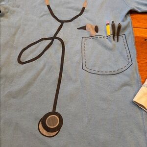 This playful kids' shirt features a fun stethoscope design, perfect for aspiring young doctor or nurse.
