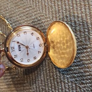 This elegant gold watch lock it necklace features a beautifully detailed design, perfect for adding a touch of sophistication to any outfit. Ideal for both casual and formal occasions. Watch works, just replaced battery.