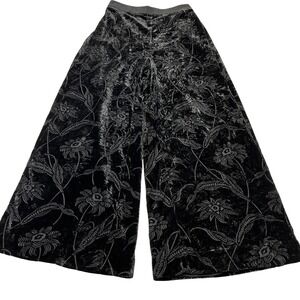 Ted Baker Pants Womens 8-10 Black Burnout Velvet Pull On Wide Leg Event Cocktail