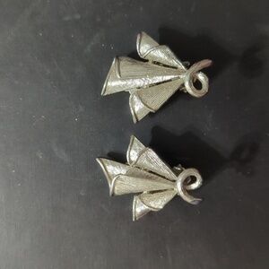 Vintage Silver Tone Fan Shape Clip On Statement Earrings. Approximately 1" long.