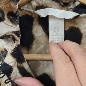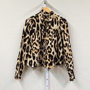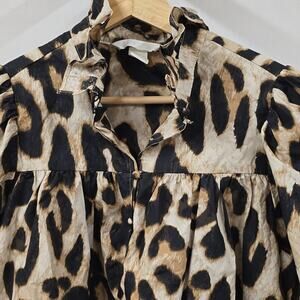 H&M Animal Print Romance Cotton Top Puff Shoulders