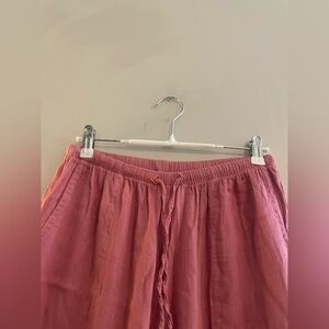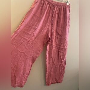 Winter Sun Linen Pants Pink Rose with Ruffle Ankle and Drawstring Waist
