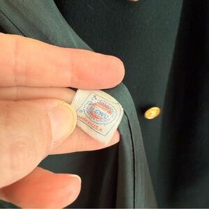 Beautiful vintage Forecaster of Boston 100% wool long coat in a rich Hunter Green. Double-breasted front with gold buttons, classic notch collar, and a fully intact satin lining. Warm, structured, timeless, and in excellent vintage condition.