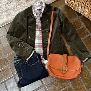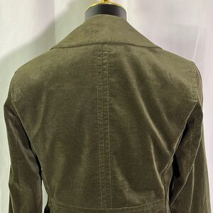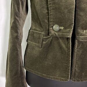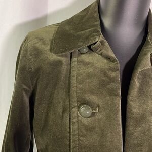 Talbots Dark Green Velvet Open Front Military Style Jacket