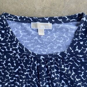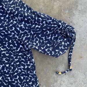 Micheal Kors blue Floral Top with Fluttered Sleeves Blue White Small