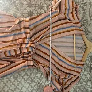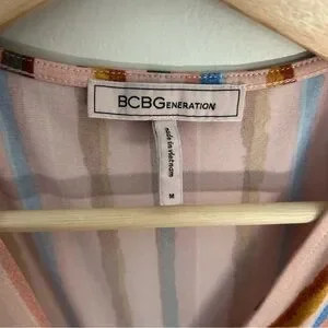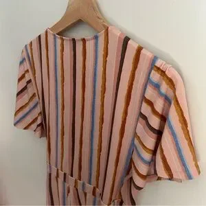 BCBGeneration Dress Womens Short Sleeve Riviera Stripe Wrap V-Neck Multicolor M