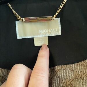 Stylish black jacket with gold zipper. Features buttoned cuffs and collar. Perfect for versatile wear.