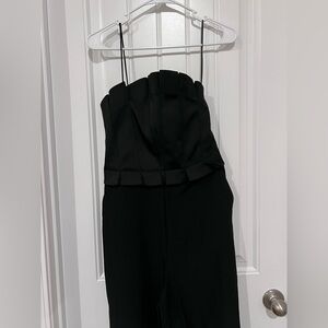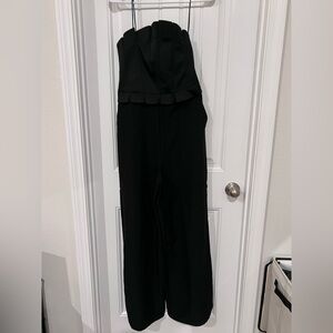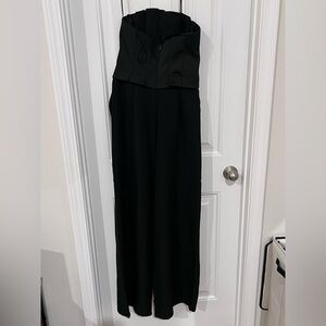 The wide-leg trousers give a sleek, lengthening effect, while the premium crepe fabric adds flow and movement. This jumpsuit is brand new with tags, never worn.