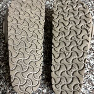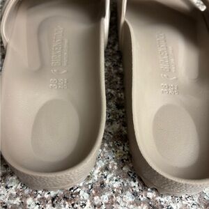 Stylish Birkenstock slides in taupe. Features an oversized buckle detail. Bought last weekend and grabbed the wrong size. Size EU 38 New w/out tags