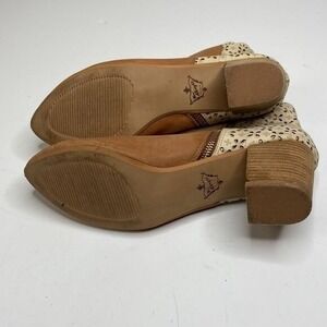 Very nice Anthropologie Miss Albright Tan and Cream Filigree Ankle Bootie size 10M. Small scuffs from general wear. No material tag available. Good overall condition. See photos for additional details.