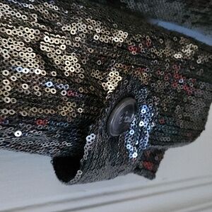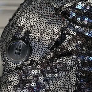 I.N.C. - Brand New with Tags! Stunning Silver & Black Sequin Coat. Ideal for the Holidays & Glamorous events. Double Breated bottons, side pockets and long cuff sleeves. Fully lined interior.