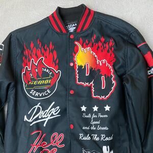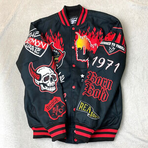 Dodge x Reason Men Varsity Bomber Jacket Limited Edition M Black Demon Flame NEW